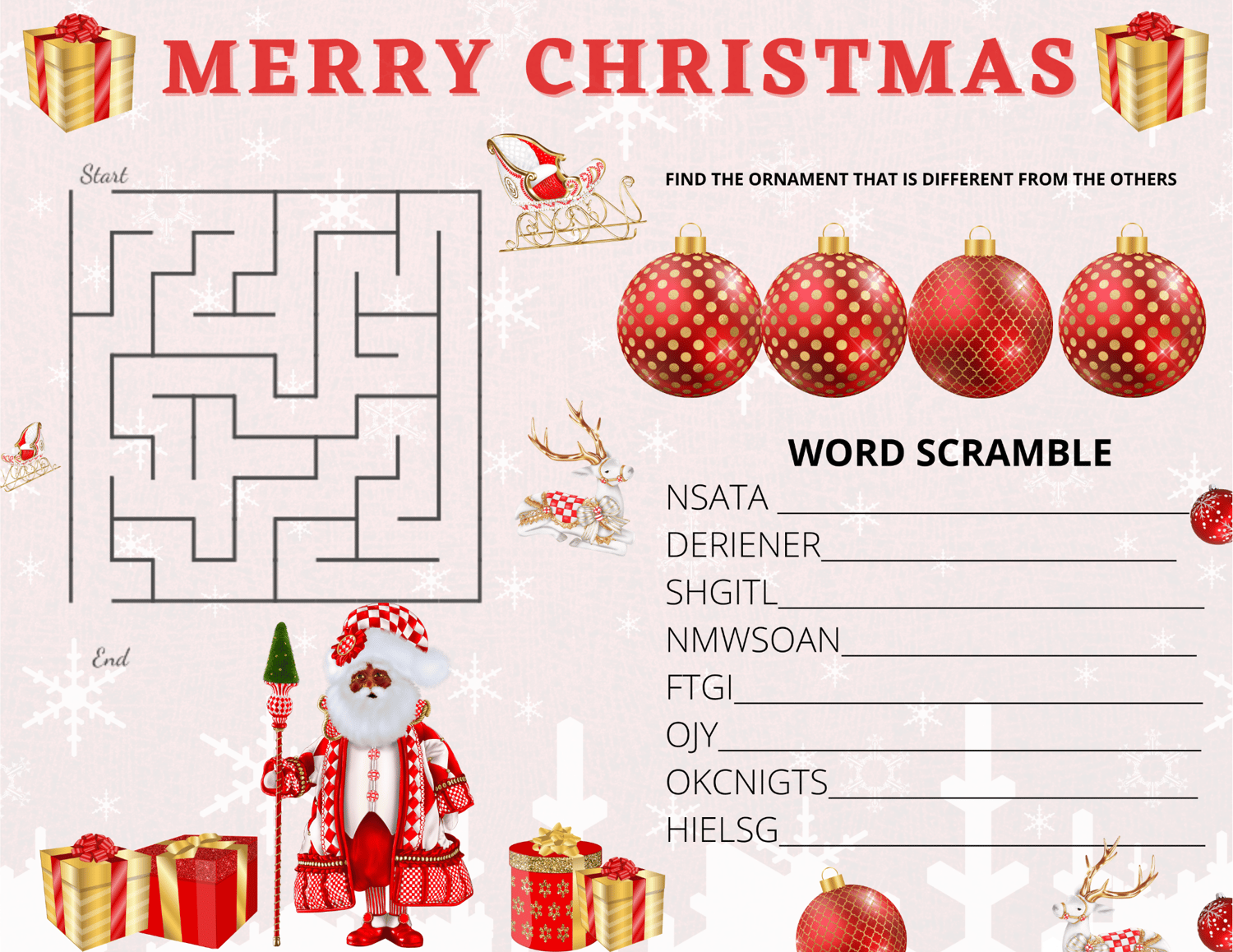 Keep the little ones busy this Christmas season with our Merry Christmas Activity Sheet including a Word Scramble and a Maze to keep them occupied and engaged. Download includes *BONUS* 8 Dear Santa Letters to create their wish lists.