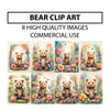 Bear Clip Art Designs - 8 High-Quality JPGs Bundle, Watercolor Digital Prints, Wall Art, Commercial Use