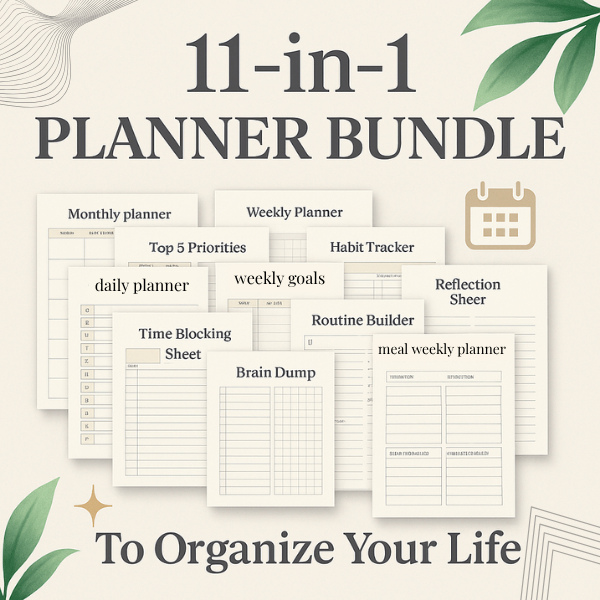 - Weekly Planner â Plan your week with intention and clarity; perfect for organizing tasks and priorities.