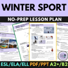 This lesson plan combines English Language Arts, ESL, ELL, Sports, Winter Sports, The Winter Olympic Games, Health, Winter idioms, Brainstorm, Tips, sport vocabulary, debates, conversations, speaking, projects, and research in one lesson.