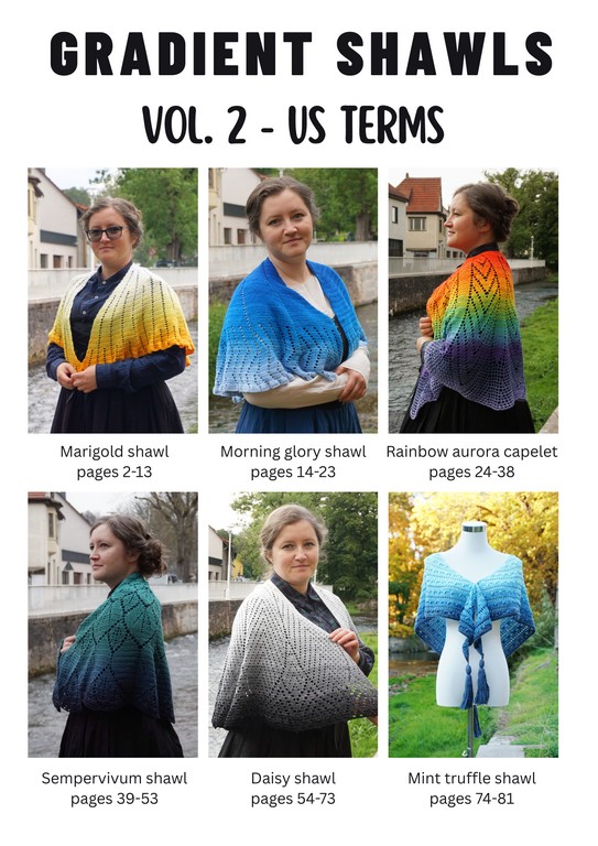 Six lovely crochet shawl and capelet patterns perfect for gradient yarns or for a single color of yarn.