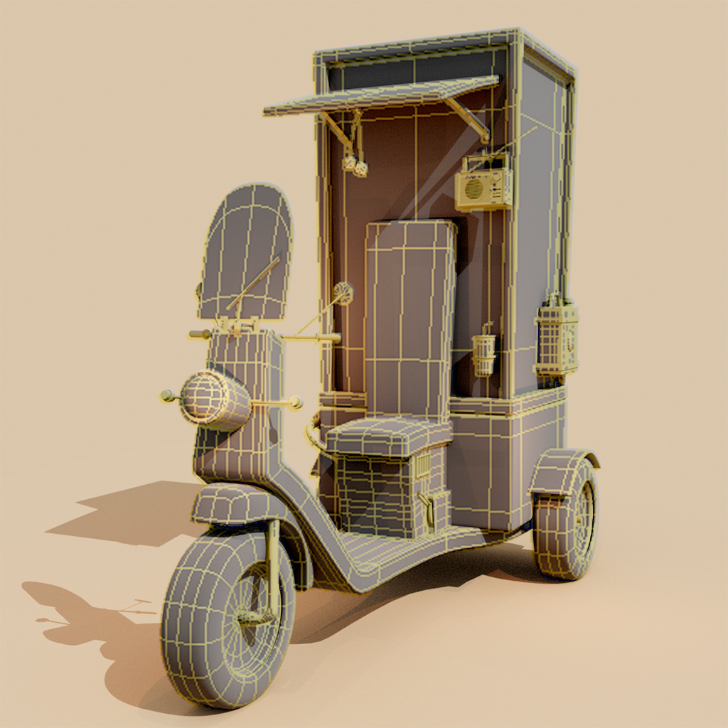 High-quality stylized Street Food Cart Scooter designed for games and real-time applications. This asset combines a charming low poly aesthetic with optimized geometry and detailed 2K textures.