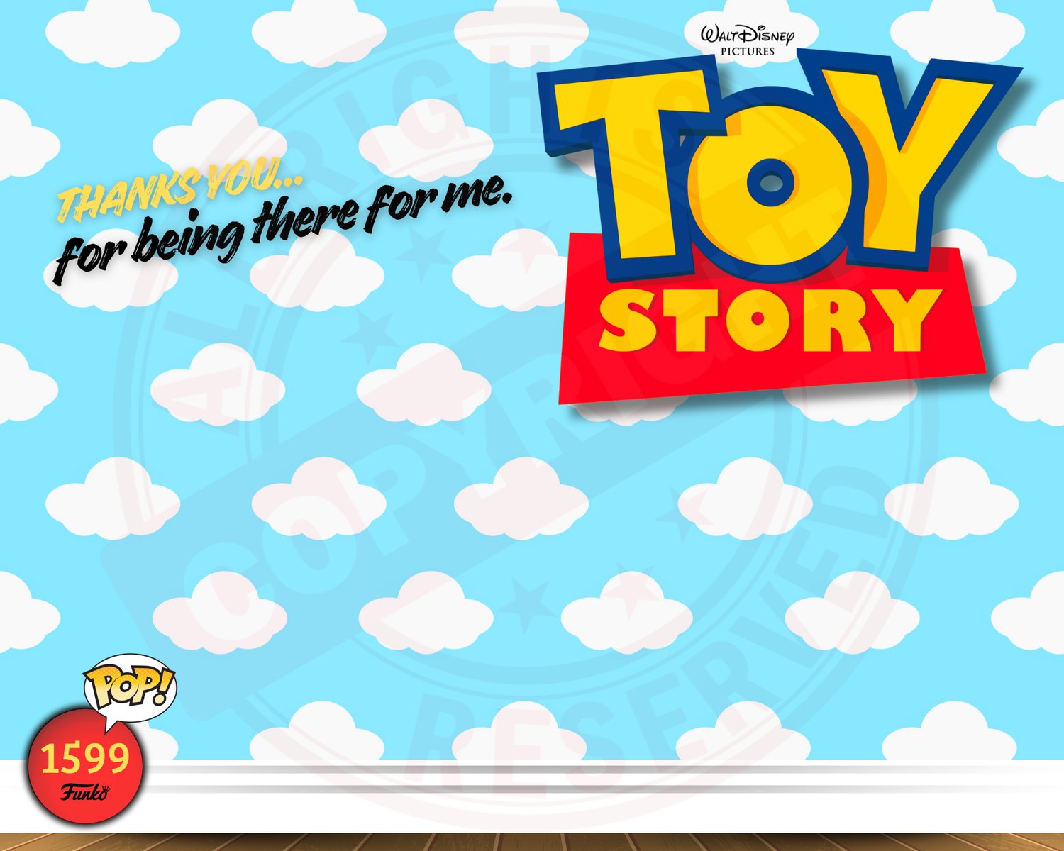 This background has been created specifically for this figure and fits perfectly inside a 25x20x20 cm display case, recreating the iconic sky-with-clouds scene from Toy Story.