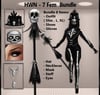 Bundle include for Fem 8 Items ( Outfit 3 size Slim , L, XL , Shoes , Gloves, Hat , Mask , Staff , Necklaces , Eyes) .