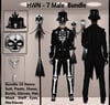 Male Bundle Include 10 Items ( Suit , Pants , Shoes, Boots, Hat, Gloves, Necklaces , Eyes, Staff , Mask )