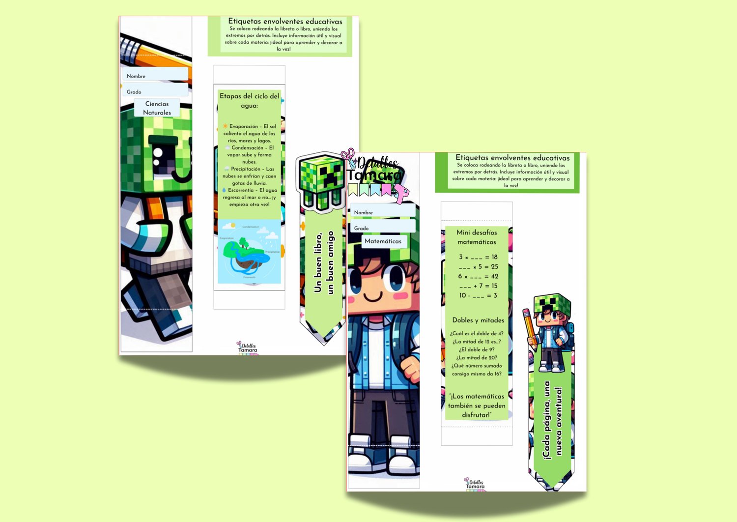 🎓 7 Etiquetas envolventes educativas (una para cada materia: matemáticas, español, geografía, ciencias naturales, inglés, historia y educación cívica)