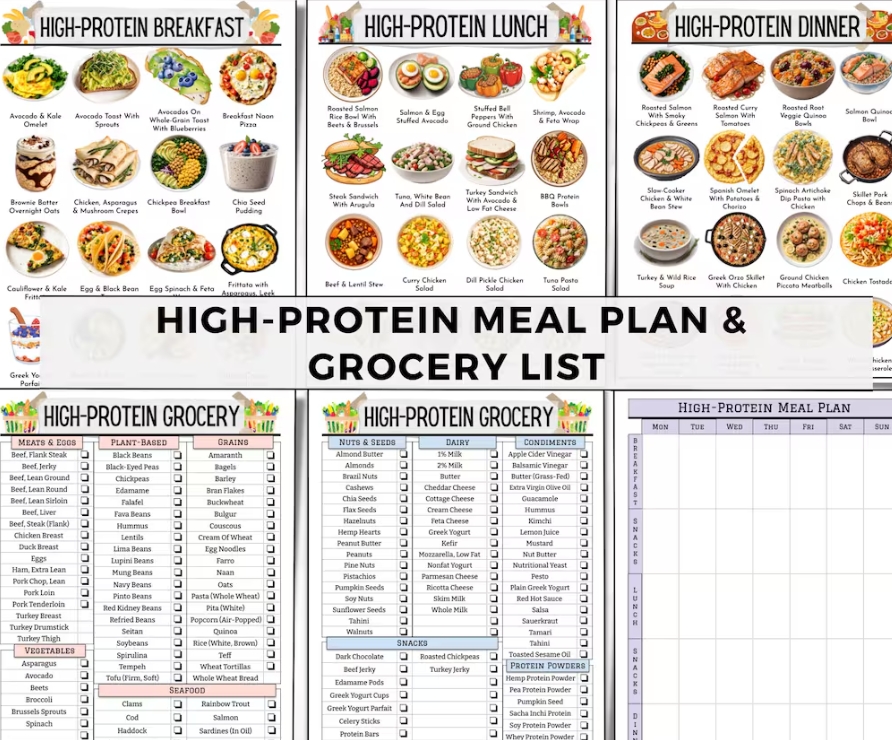 High Protein Meal Plan, High Protein Food List, Low Carb Keto Food List for Muscle Building & Weight Loss, High Protein Grocery ListGluten Free Meal Plan, Gluten Intolerant, Gluten And Dairy Free, Gluten Free Grocery List, Meal Planner, Gluten-Free Food,