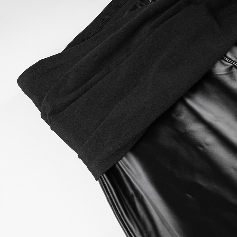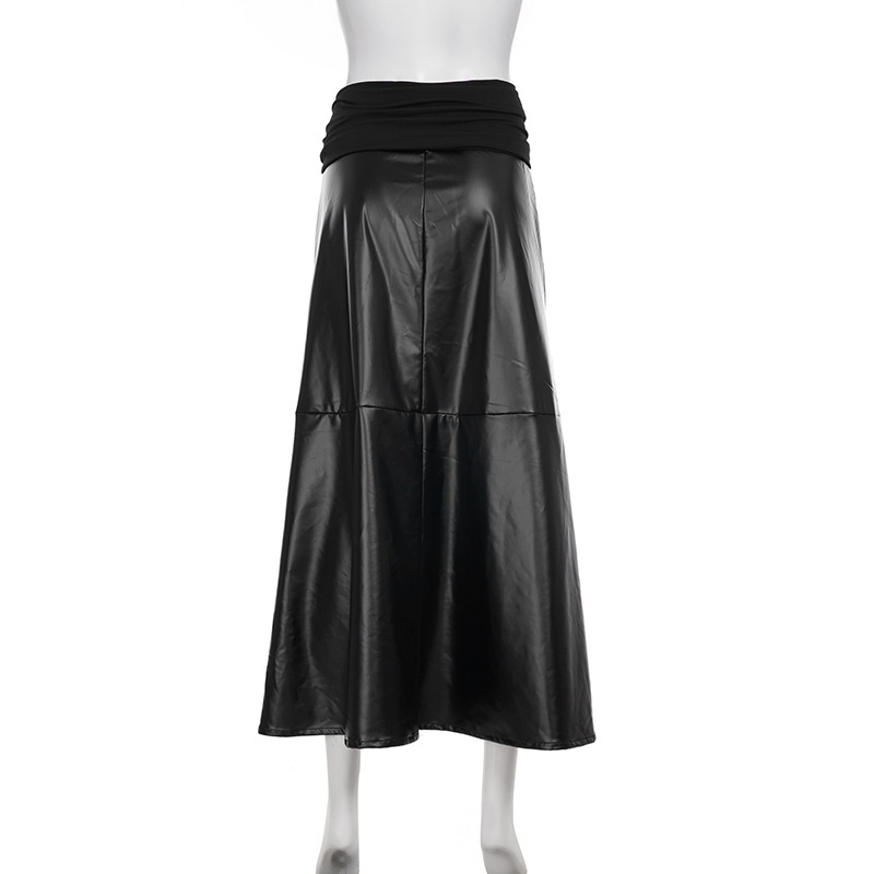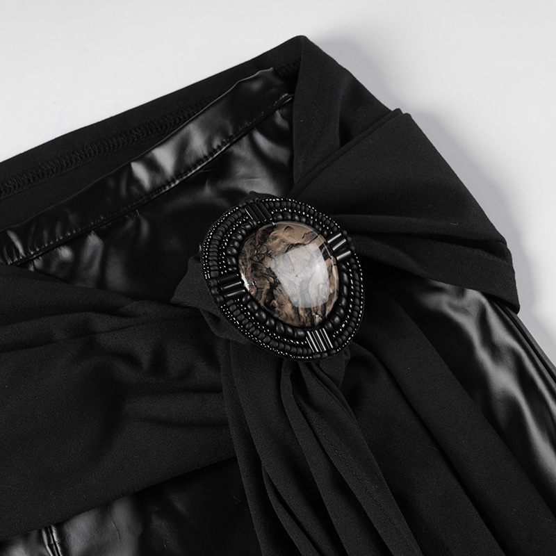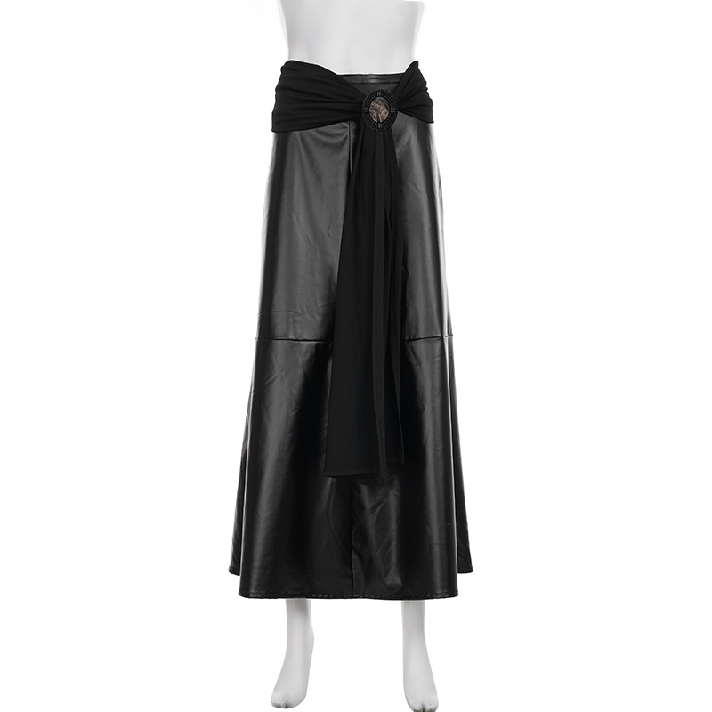 Gothic tribal boho round belted low-waist black leather maxi skirt