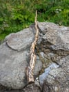 Design is carved with two lines or veins zigzagging from the handle to the tip, which is the flow of energy from the spell caster through the wand, directing out from the tip to the intended target.