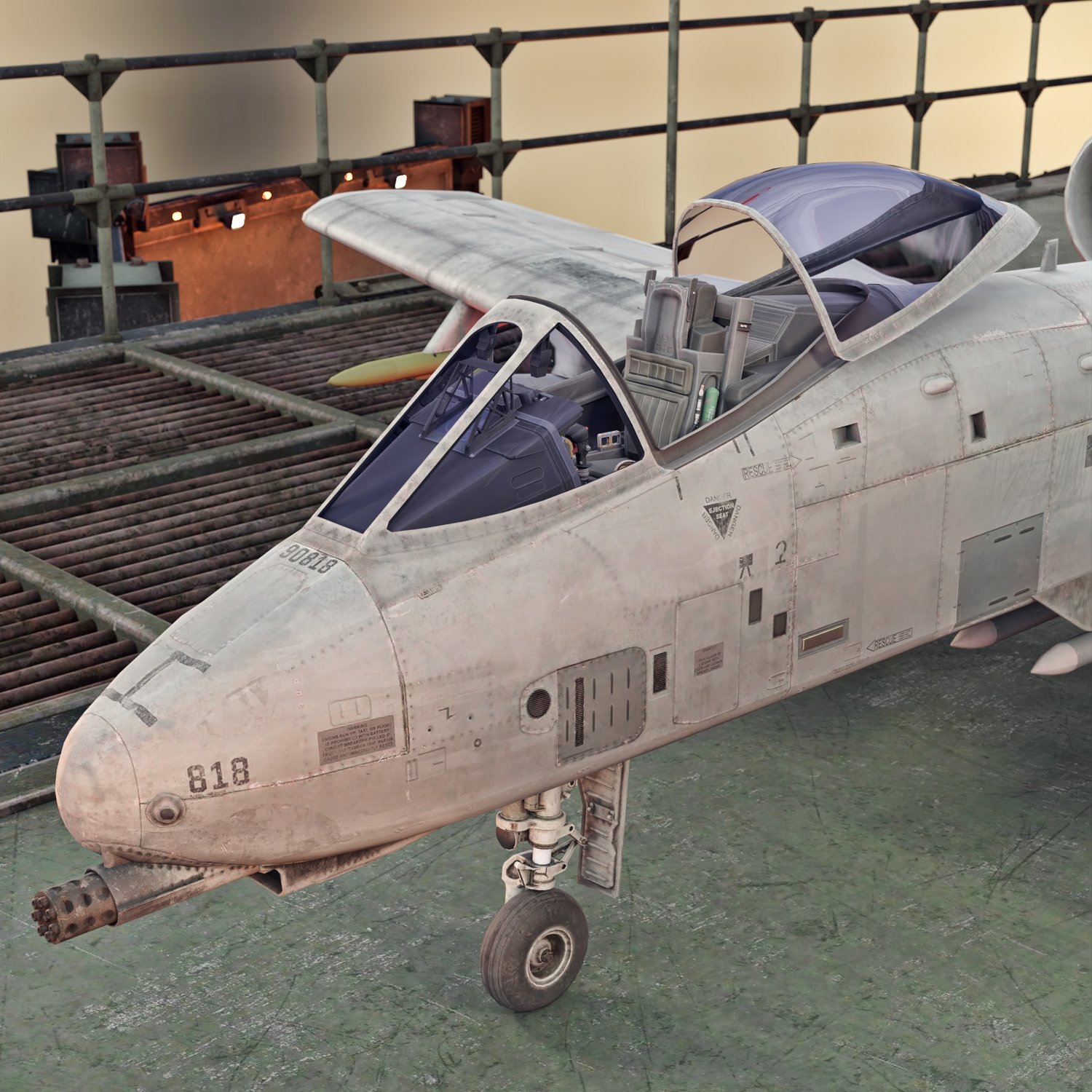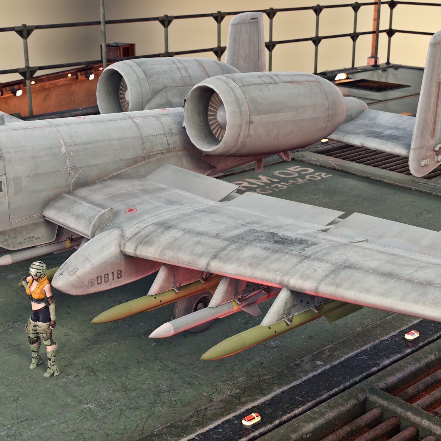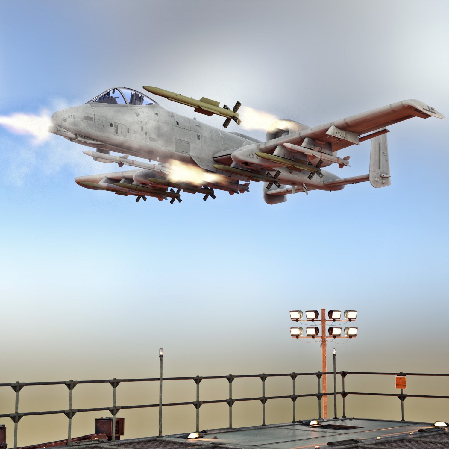 One of the greatest close air support aircrafts of all time. Single pilot, 2 powerful engines and a terrifying 30mm gun- everything you need to strike fear in your enemies. Very useful, mobile and serious flying vehicle. Developed in the 70s, it went through many improvements and stays in service to this day. Converted and rigged for use in DAZ. Includes a 30mm GAU gun and pylons to attach some bombs and rockets. There is a preset to attach the rockets, but you can also use the FREE rockets pack if you would like some more variety. Packs some serious fire power with exceptional mobility.