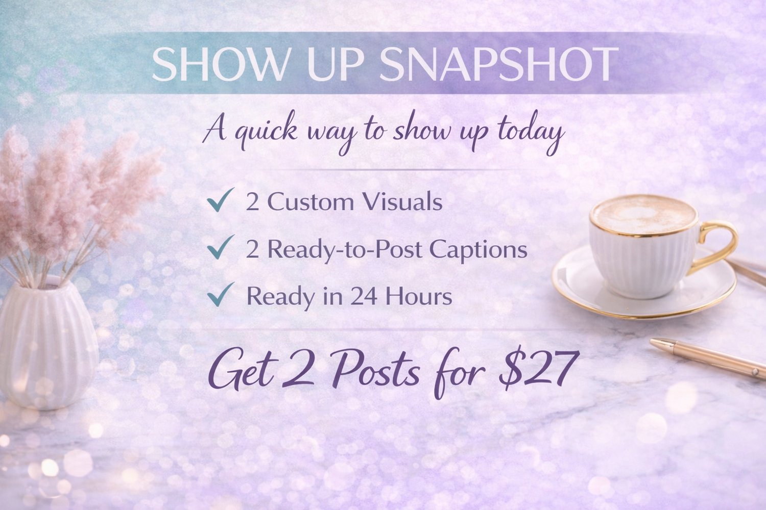 The Show Up Snapshot is a simple, low-pressure visibility boost designed to help you post with confidence this week, not someday.