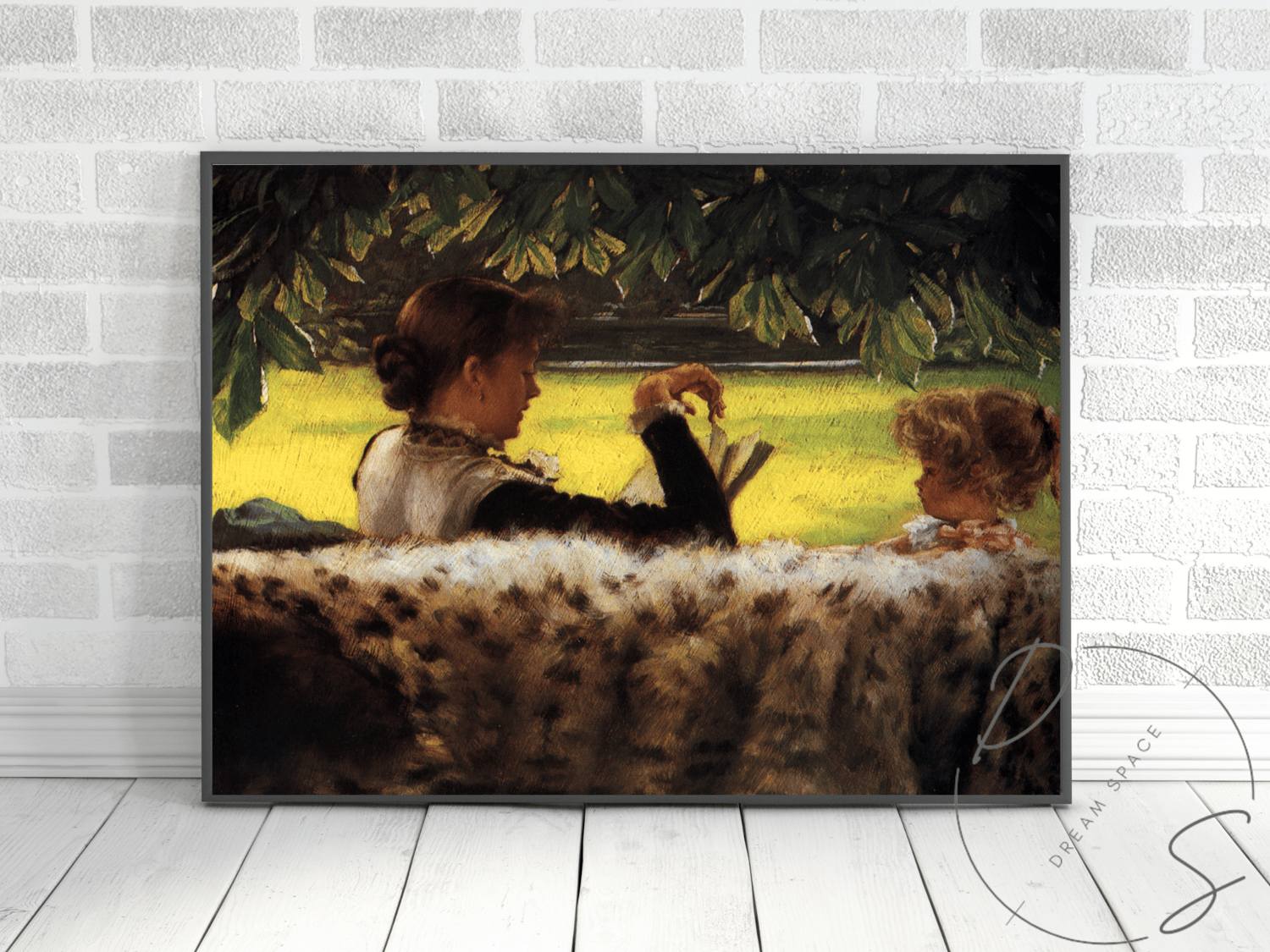 This is DIGITAL PRINTABLE PRODUCT | Instantly download and print this Reading A Story Painting by James Tissot. Original artwork 1878-79.
