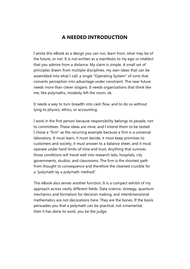 This is high-signal speculation, engineered for practice: deletion as a profit center; constraints as markets; invention as operators you can rehearse. Written by a modern polymath in the classical sense, Polymathes translates conserved structure across disciplines and prices the error of translation.