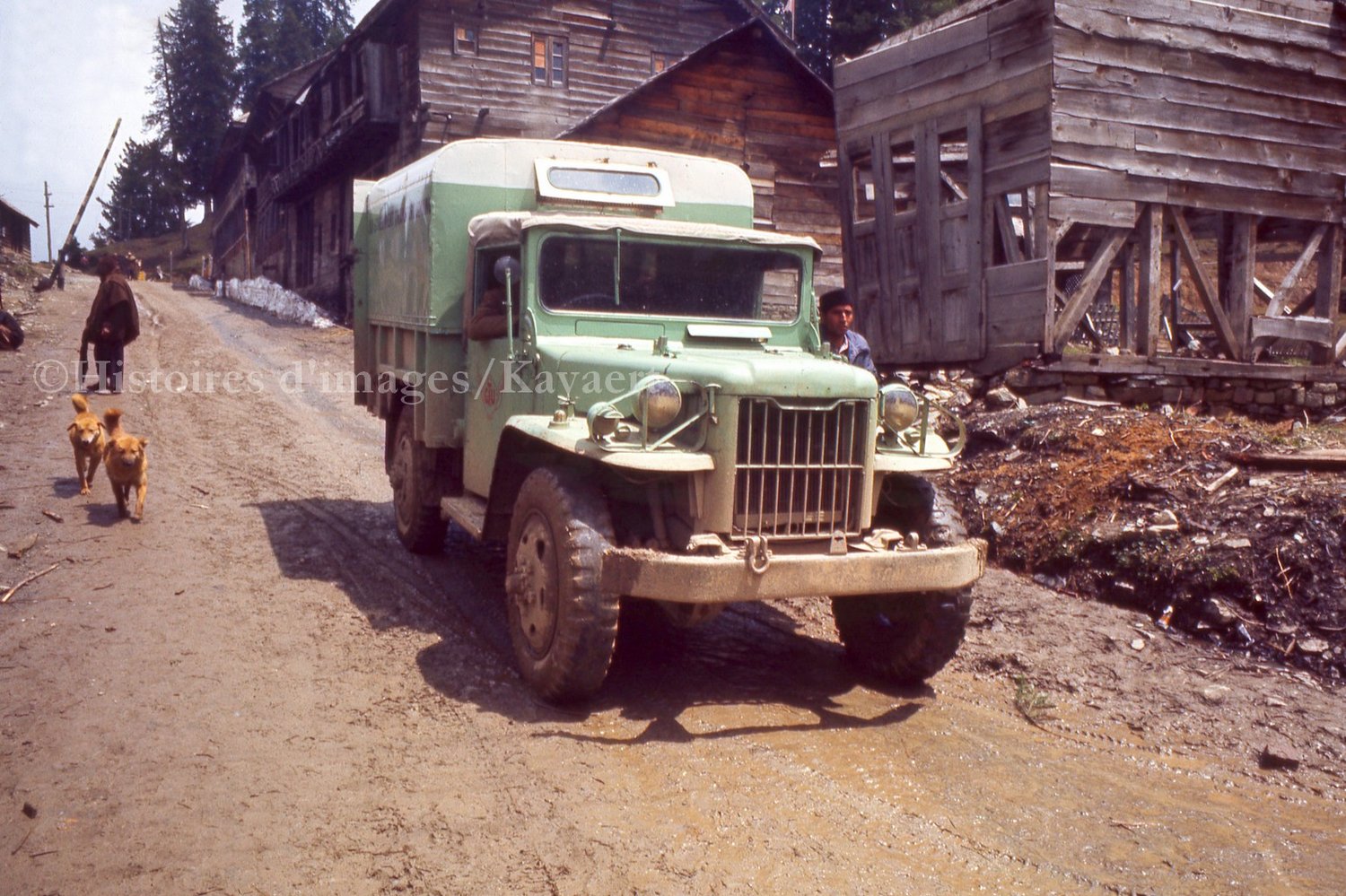 Travel back to 1960s Srinagar with this captivating vintage photograph, featuring a classic jeep navigating the roads of the time. Captured on analog film and carefully digitized, the image offers a rare glimpse into everyday transportation and the charm of mid-20th-century Kashmir.