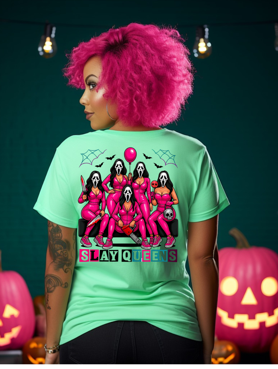 Slay Queens Halloween PNG | Creepy Girl Squad Sublimation Design | Horror Digital Download | Ghostface Pink Outfit Clipart