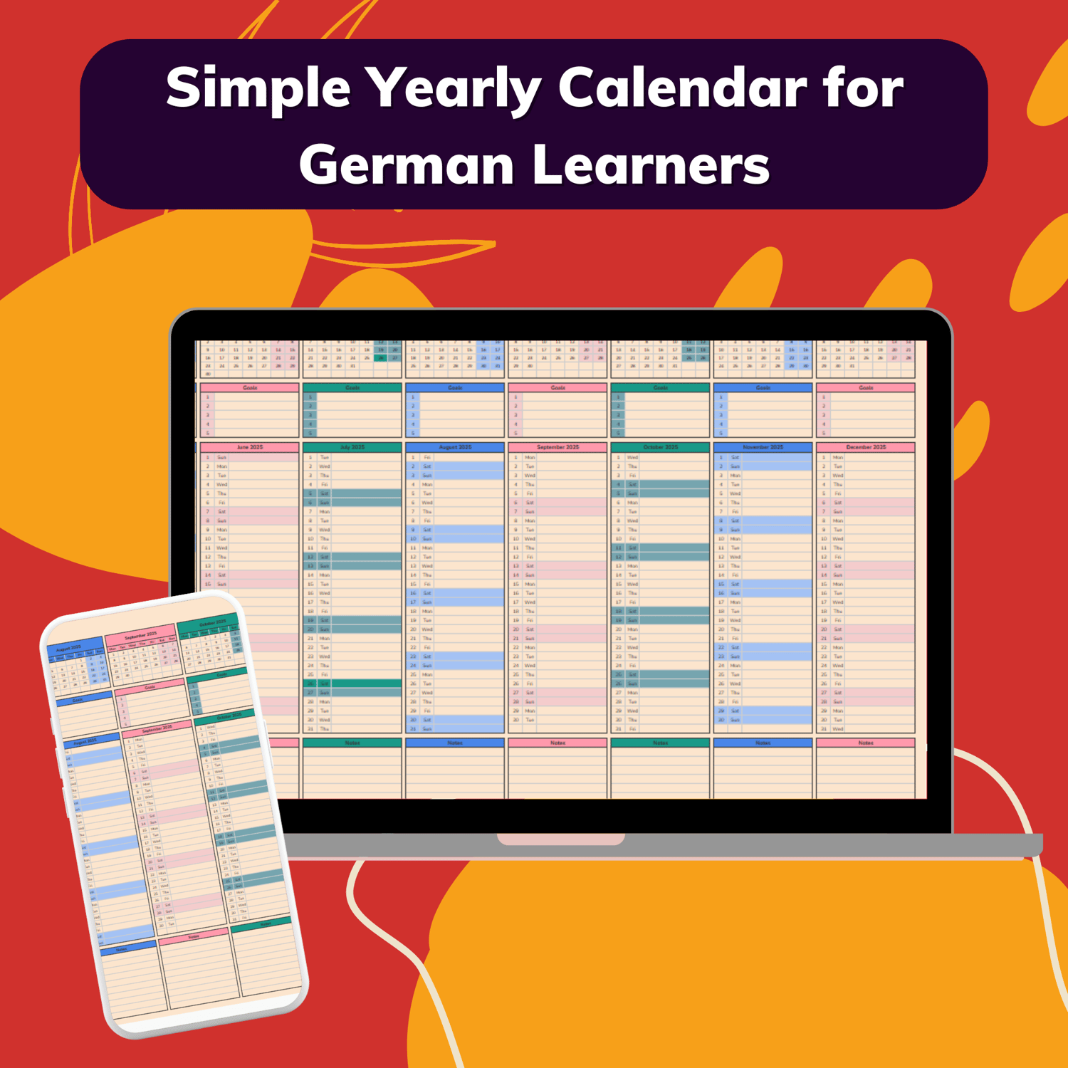 Simple Yearly Calendar for German Learners (Google Spreadsheet)