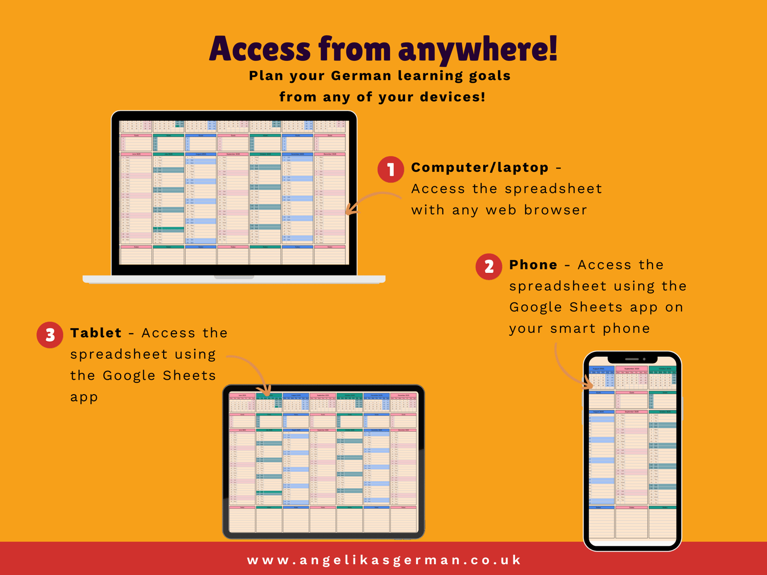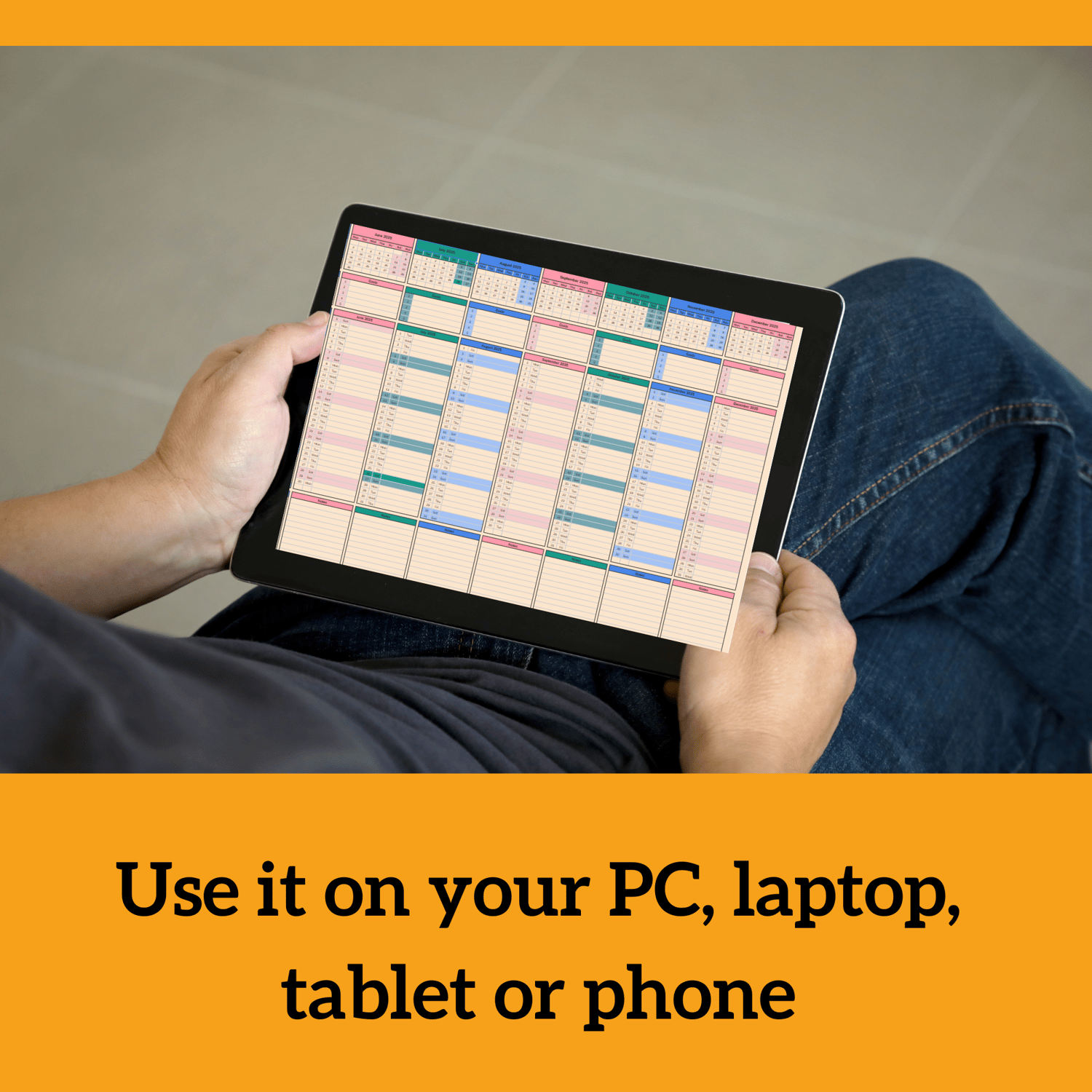 You can use the Google Sheets planners on any device: computers, tablets, and smartphones.