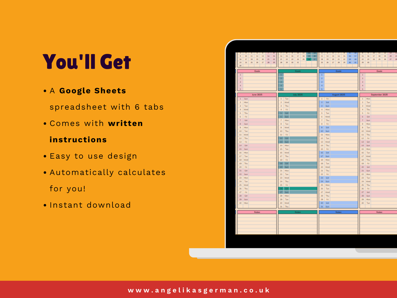 ✅ Reusable year after year – just copy the last year before you start using it (instructions are on the first tab of the spreadsheet)!