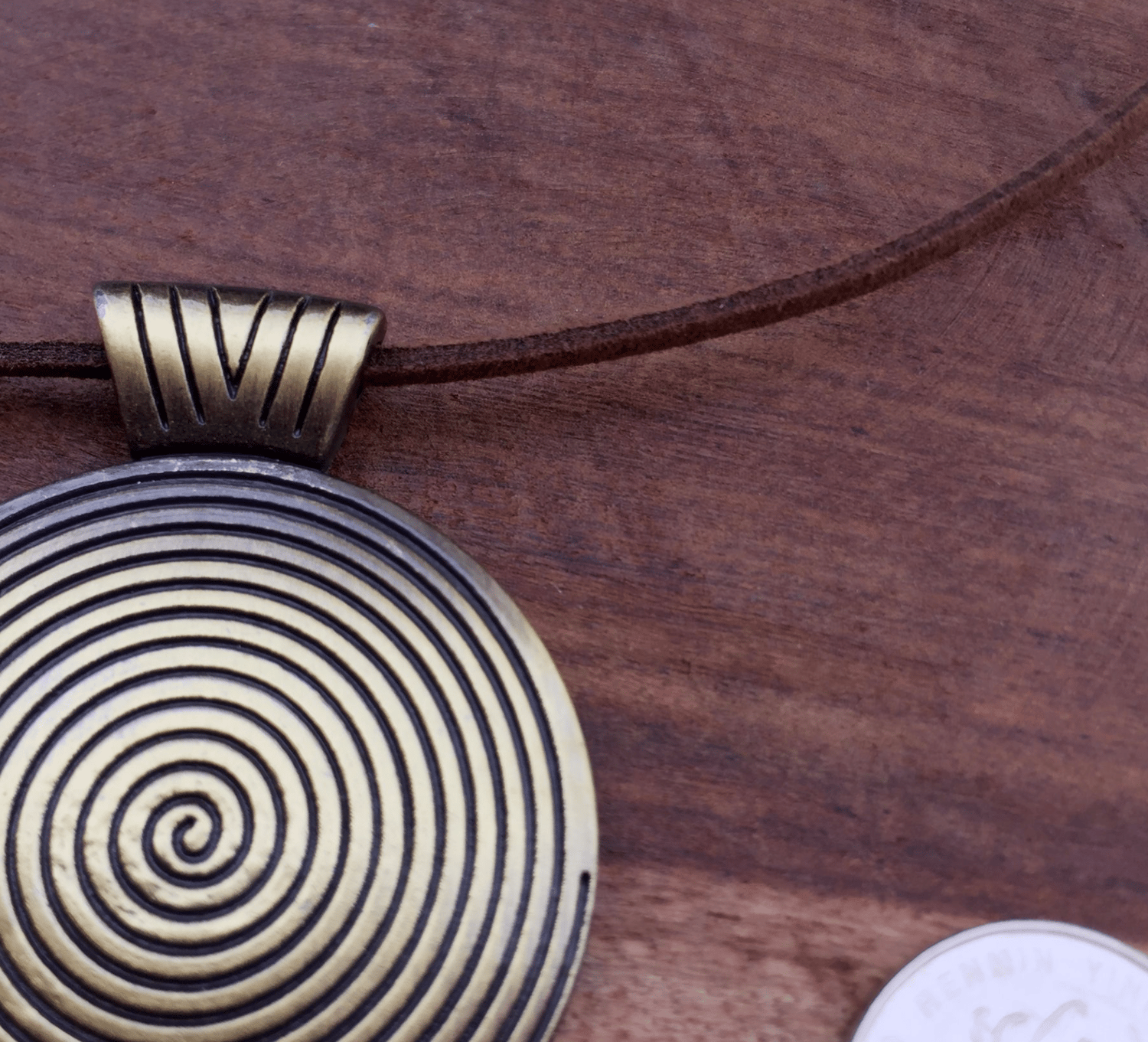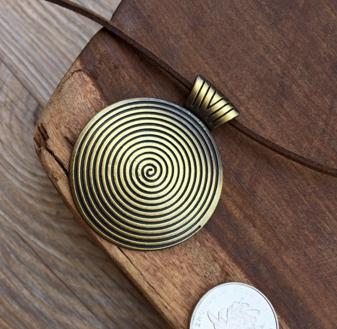 Boho vintage bronze thread round long pendant necklace