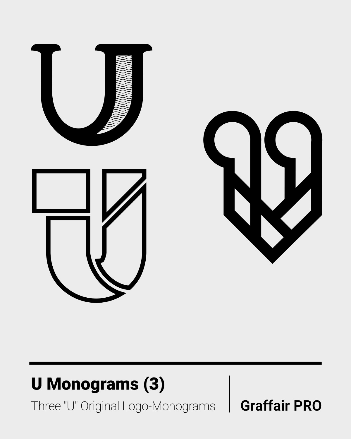 U Monograms (3): The 3rd set of three original "U" logo-monograms, included in the "1050 SVG Monograms" super bundle, amongst others, which also features an Index catalog.