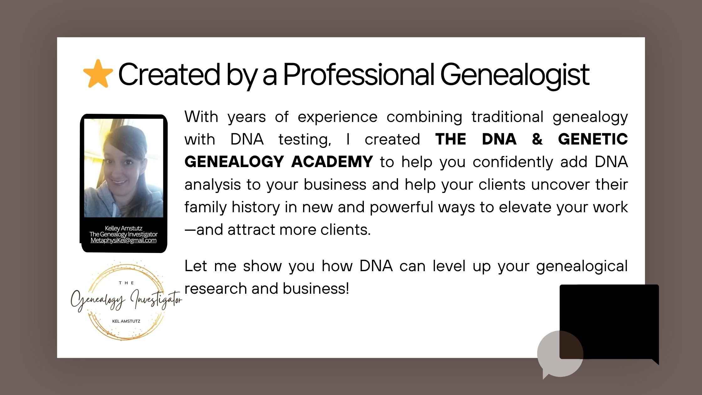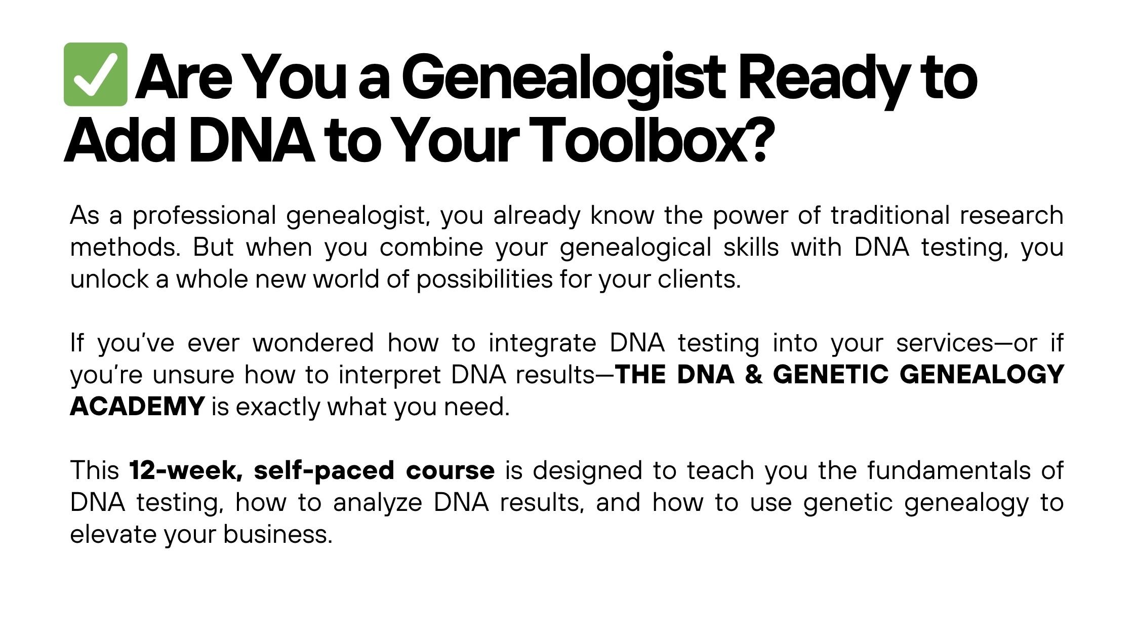 It doesn't matter if you are looking to overcome a research brick wall or if you want to become a DNA research professional, this COURSE will help!