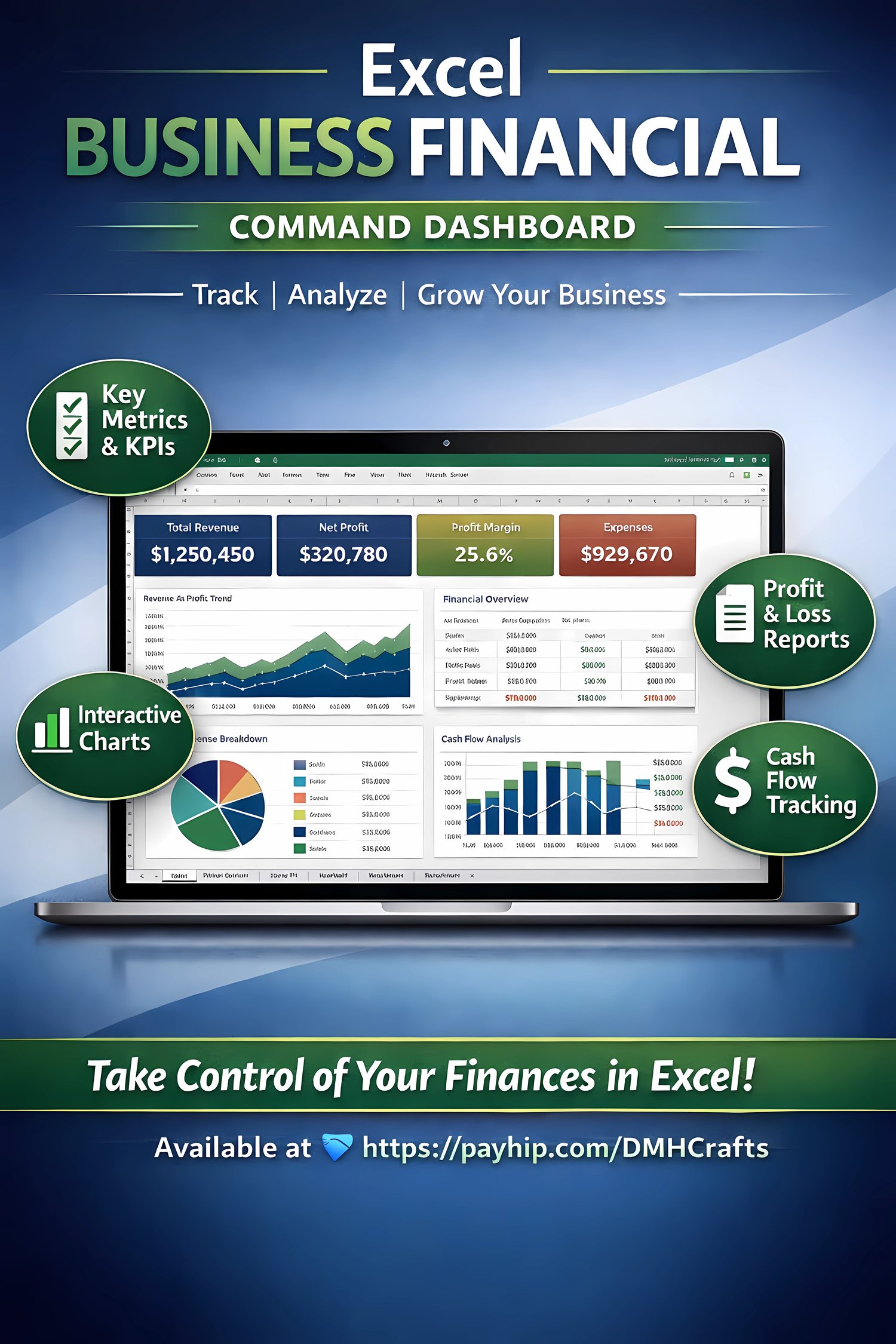 The Business Financial Command Dashboard gives you a real-time view of your money in one clean, professional system.