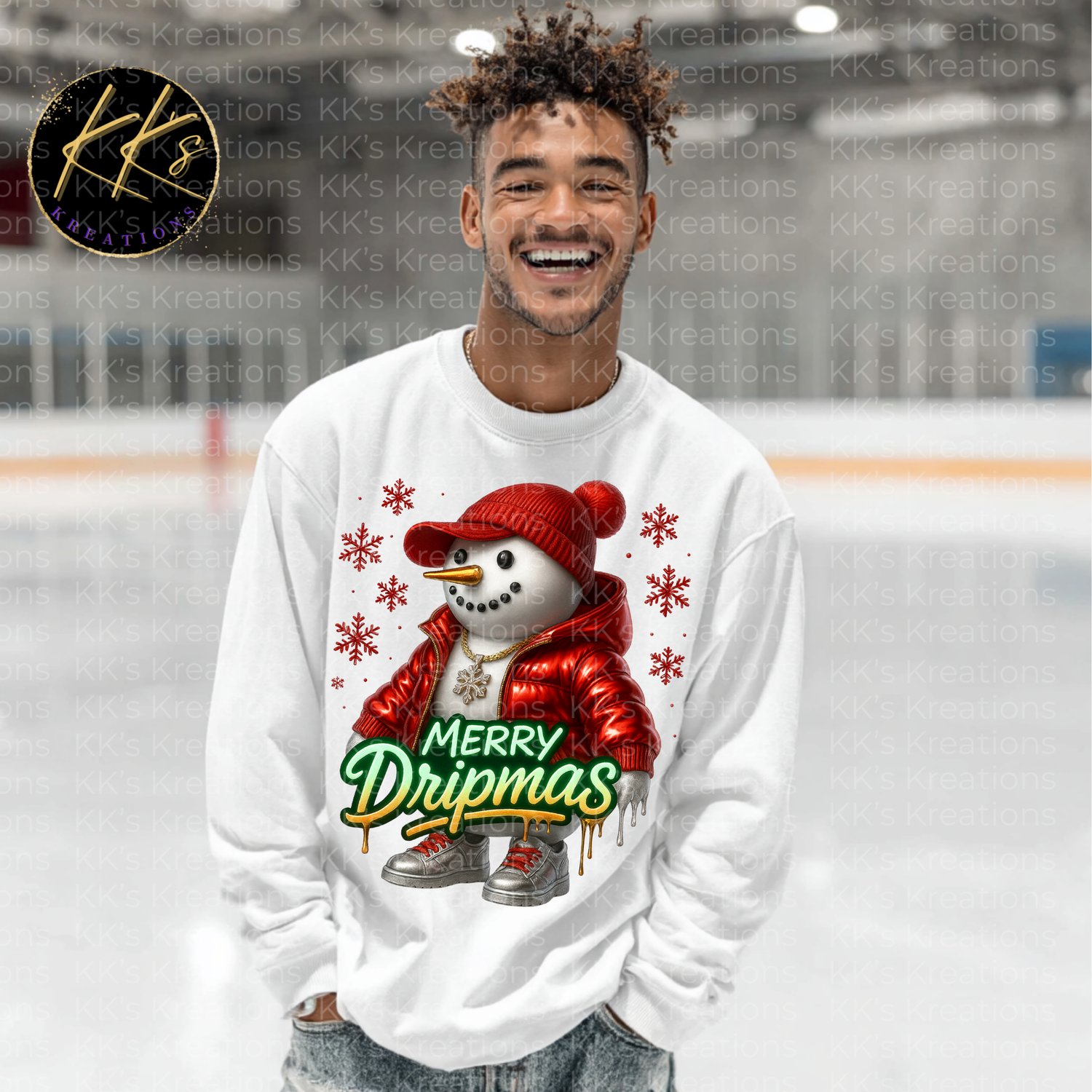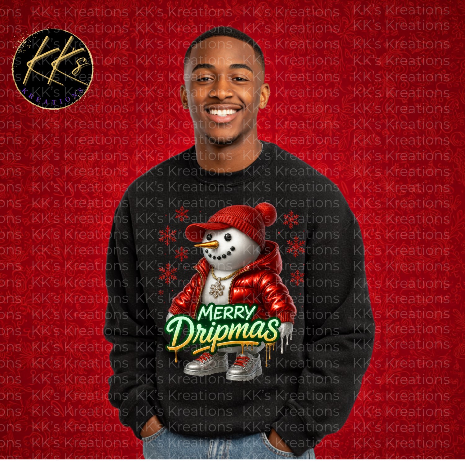 This Merry Dripmas sweatshirt brings all the festive vibes with a bold, urban-style snowman dressed to impress. Printed on a soft, cozy unisex crewneck, this piece is perfect for Christmas parties, family pictures, or everyday holiday style.