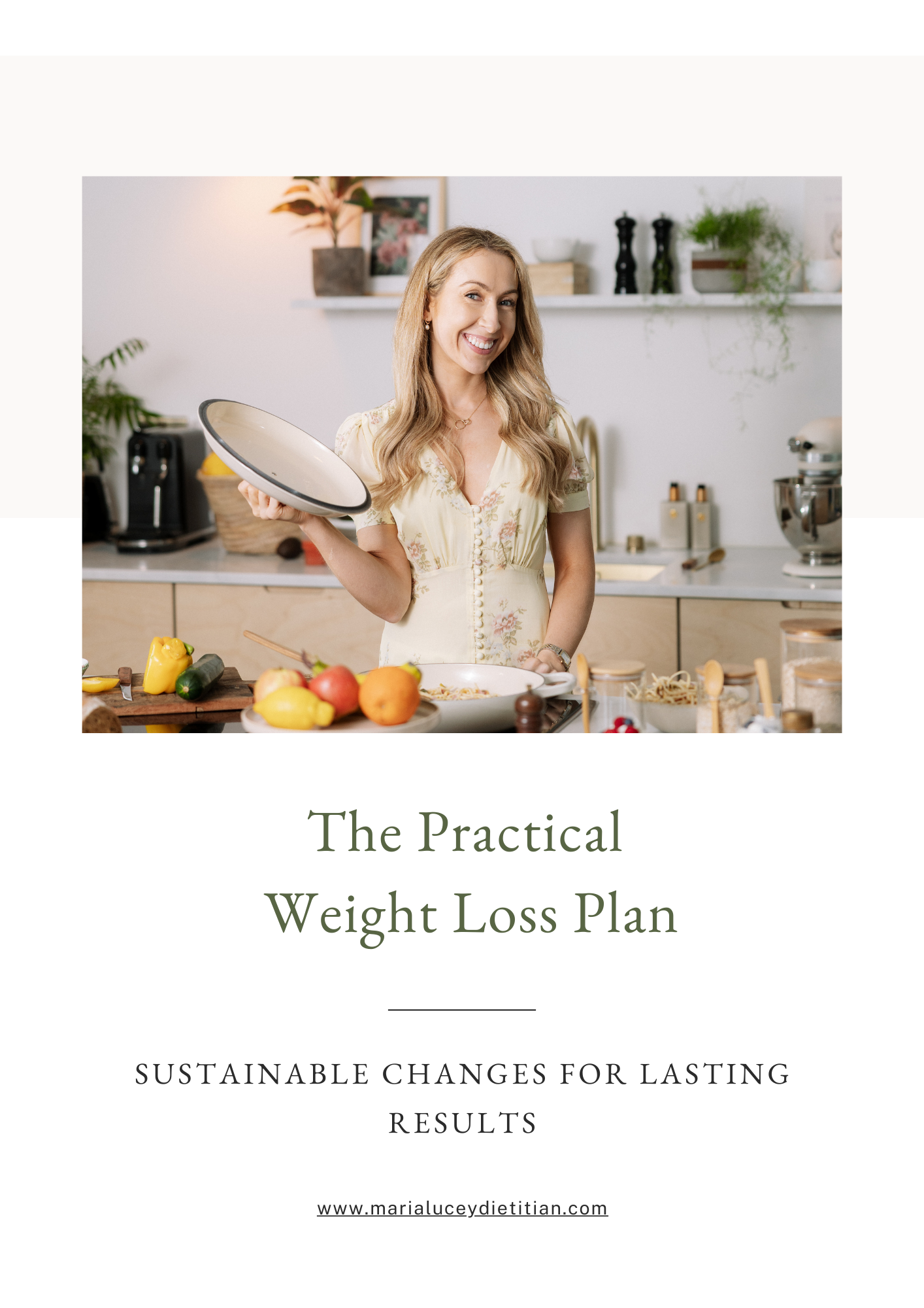 The Practical Weight Loss Plan is a 112-page step-by-step guide that walks you through the exact strategies I use with my clients to help them lose weight AND keep it off.