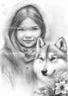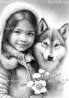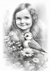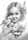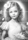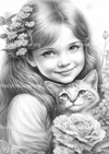 13 Beautiful Girls Childhood Innocence Coloring Pages | Printable Adult Coloring Pages | Grayscale Illustration | Printable|Animals