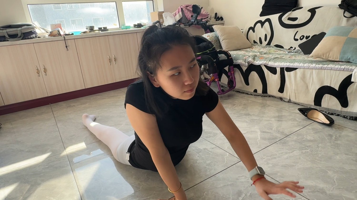 Zoe: The paraplegic girl licking her toes while wearing stockings