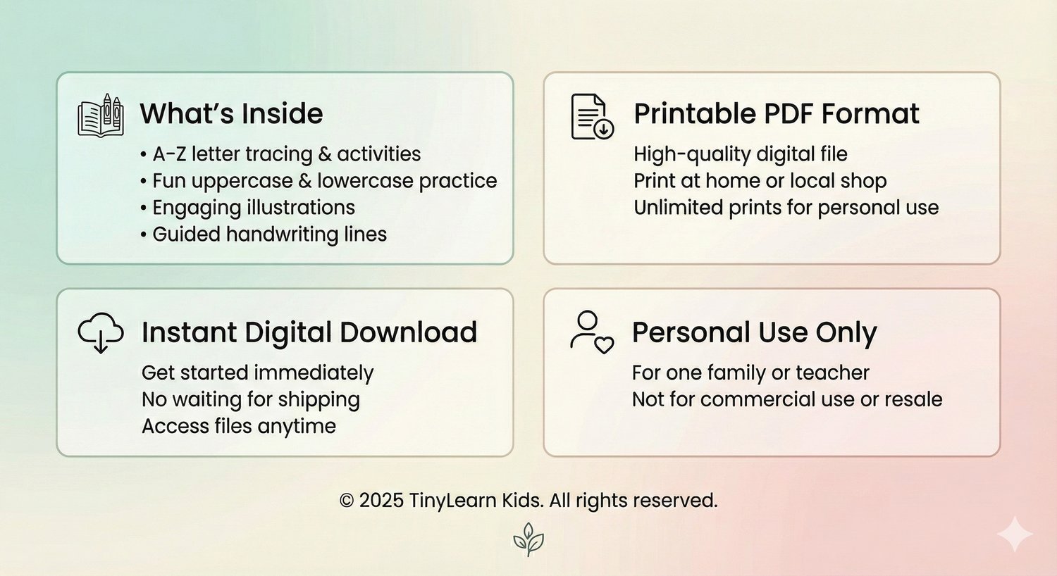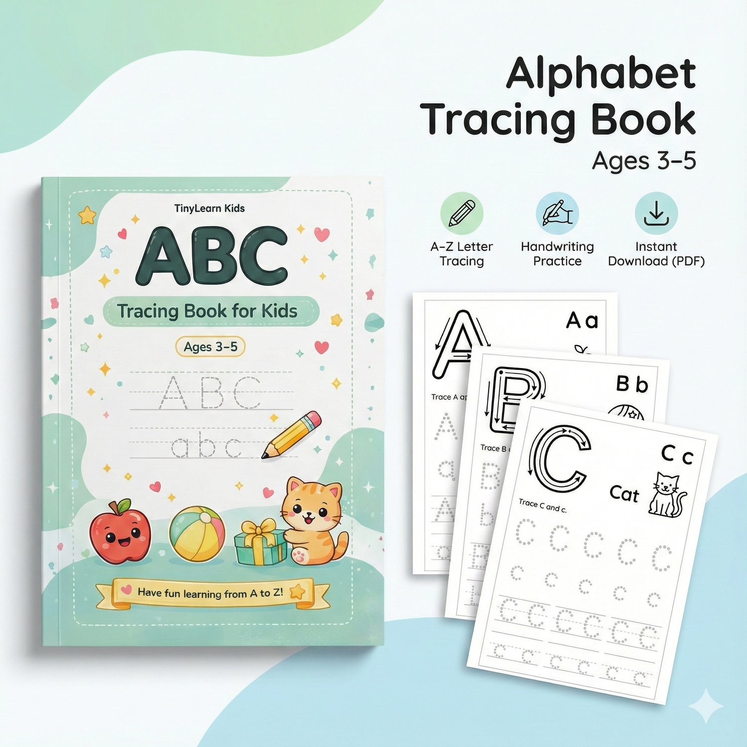 ABC Tracing Book for Kids (Ages 3–5) — Printable A4 PDF Workbook