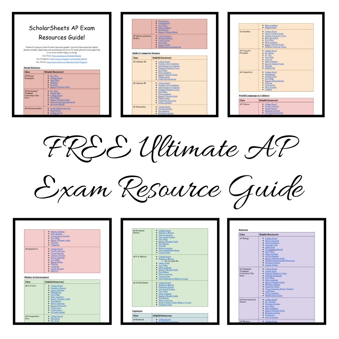 🎓 ScholarSheets Ultimate Guide for AP Exam Resources (Pay What You Want – FREE for anyone who can't afford it)