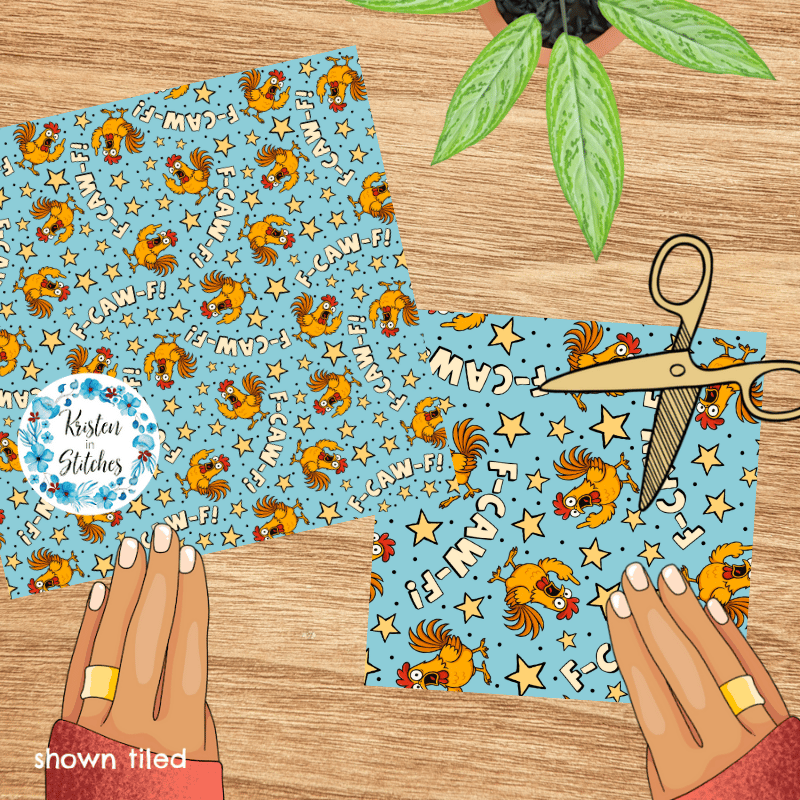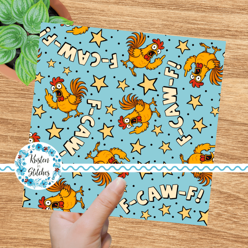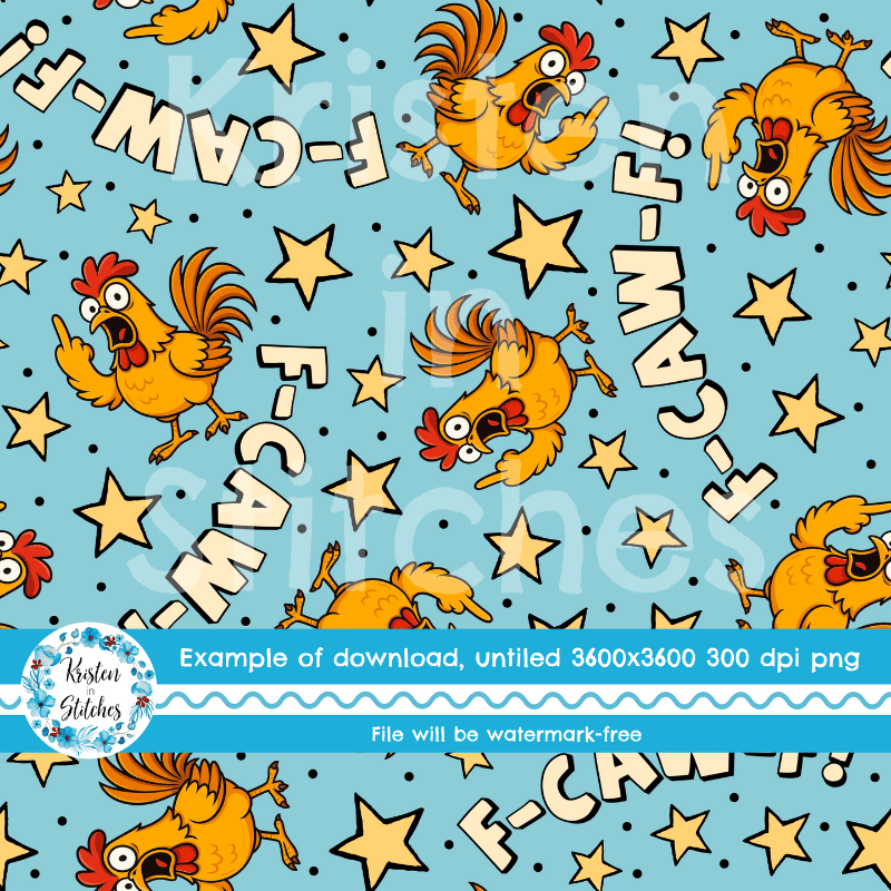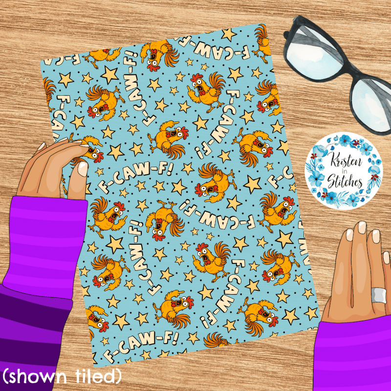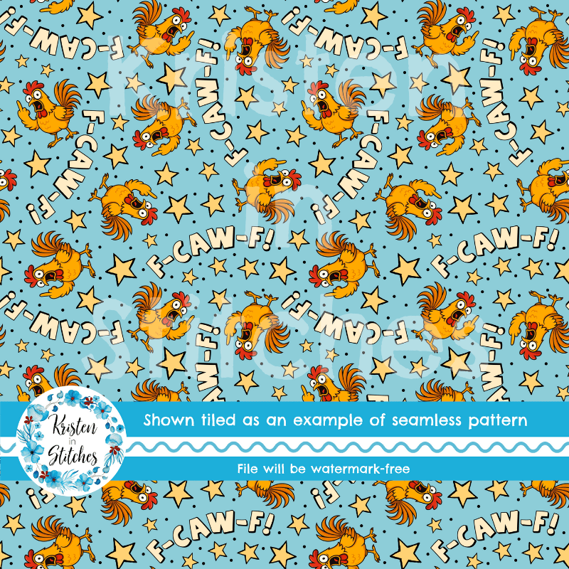 F-CAW-F Sarcastic Roosters Seamless Pattern, Fuck Off FcawF Birds, Middle Finger, Chickens