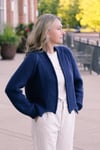 Size: 30 (32, 34, 36, 38, 40, 42, 44, 48, 52, 56)” bust; sample shown in sixth size worn with 5” positive ease.