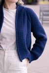 Construction: The Fleet Cardigan is knit seamlessly from the top down in allover textured seed stitch, using raglan construction with a compound rate of increase to ensure a proper fit for all sizes. Stitches are cast on at the neckline, then fronts, back & sleeves are worked to the bottom of the armhole. Increases are made on fronts, back and sleeves every RS row initially, then on fronts and back every RS row and sleeves every other RS row until the correct armscye depth is reached for each size. Sleeve stitches are placed on hold while the lower body is worked without shaping to the ribbed hem. Long, full sleeves are then continued to the matching ribbed cuffs. Stitches are picked up along the front edges and neckline, and worked in single rib with a rolled stockinette edge, ending above the hem.