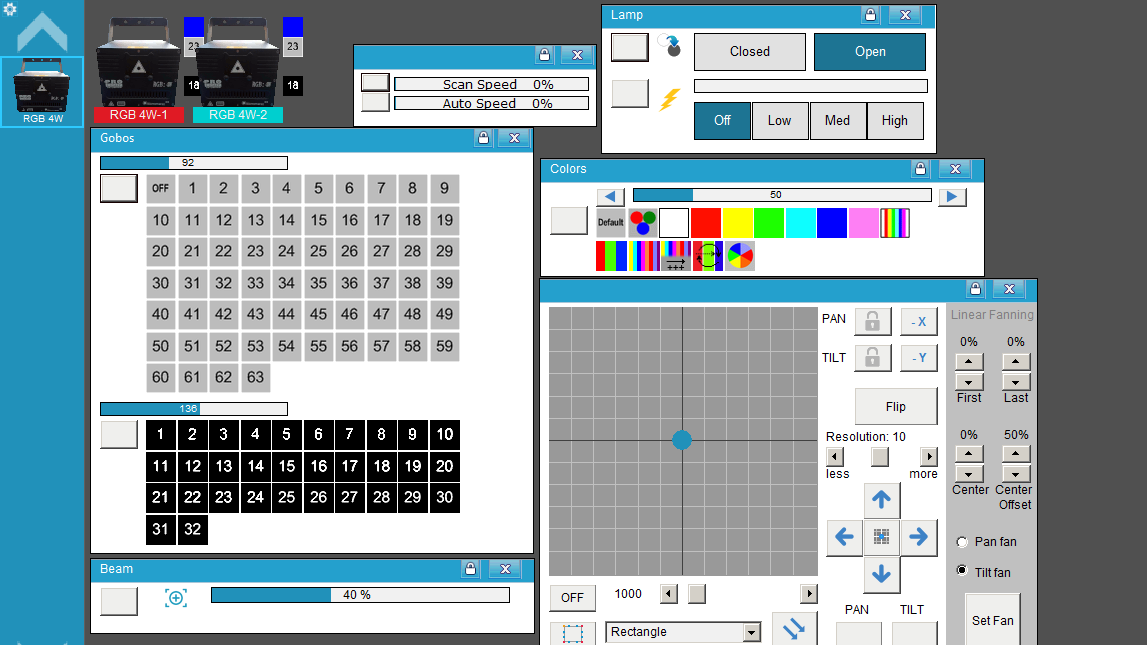 - Realizado para el modo "Channel Setup / Normal Mode", que es de 10CH y para el modo RGB: "Laser Setup / 2. Color / RGB".