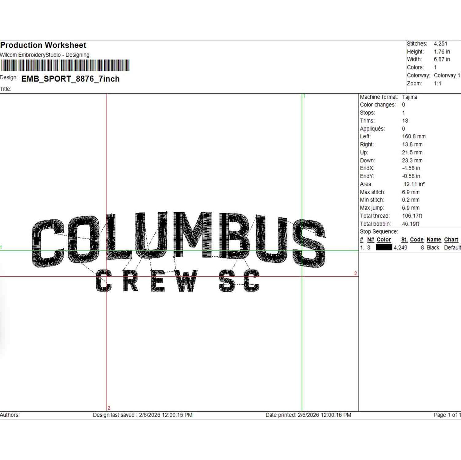 MLS Columbus Crew Wordmark Logo Embroidery Designs, Columbus Crew Embroidery Files, MLS Columbus Crew Soccer Team Logo Embroidery, Major League Soccer Machine Embroidery Design, Digital Download