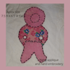 They are cotton fabric hand stitched onto cotton muslin and then a running stitch of embroidery floss outlines with small flowers embroidered on the bonnets. They are perfectly rustic and vintage looking but certainly not professionally hand stitched. There are slight discolorations in the muslin on some of the blocks but nothing that will detract from their charm.