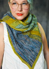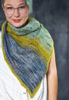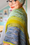 The shawl is knit sideways in sections of one-color brioche in two alternating colors, specially created by Uschitita for Jyväskylä Summer Knit Festival 2019.