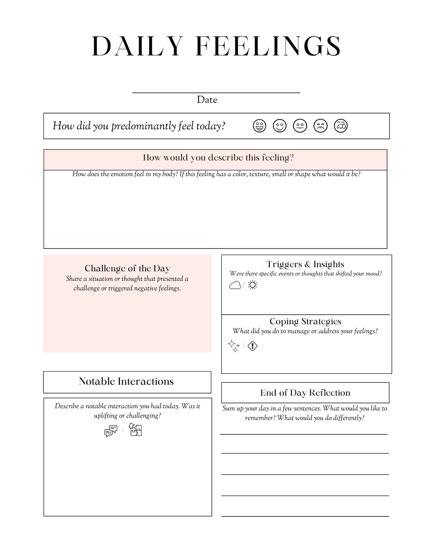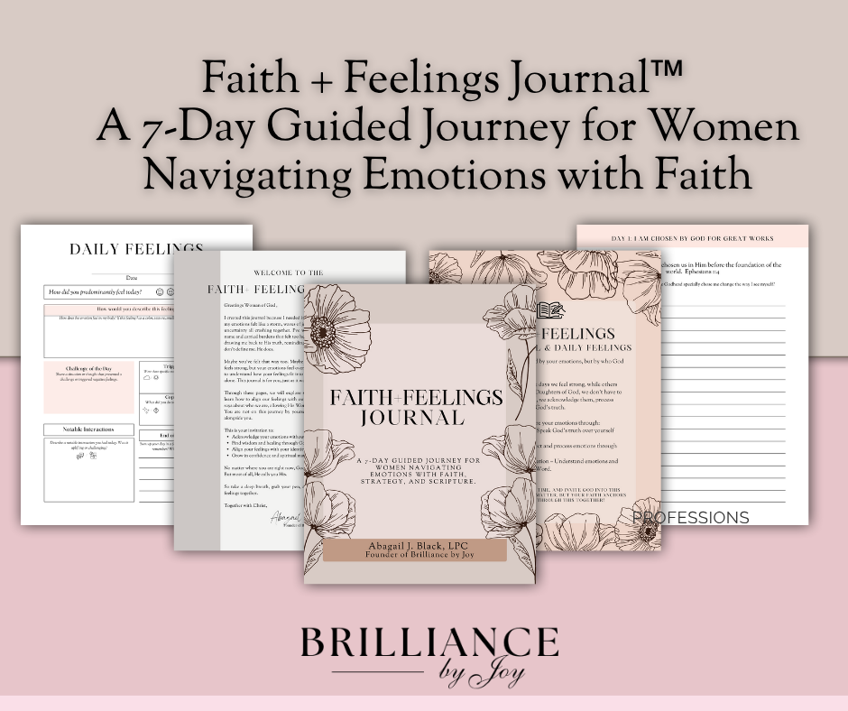 The Faith + Feelings Journal is a soul-nourishing companion for Christian women navigating anxiety, grief, stress, and personal growth. Designed to support emotional healing through faith, this journal blends therapeutic reflection prompts with Scripture-based encouragement.