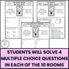 Keep your students engaged and reviewing key math concepts with this self-checking digital escape room! Perfect for end-of-year practice, test prep, or even a fun challenge during the school year. Students must escape from the Mathematical Mansion by solving 40 multiple-choice math questions across 10 themed rooms.