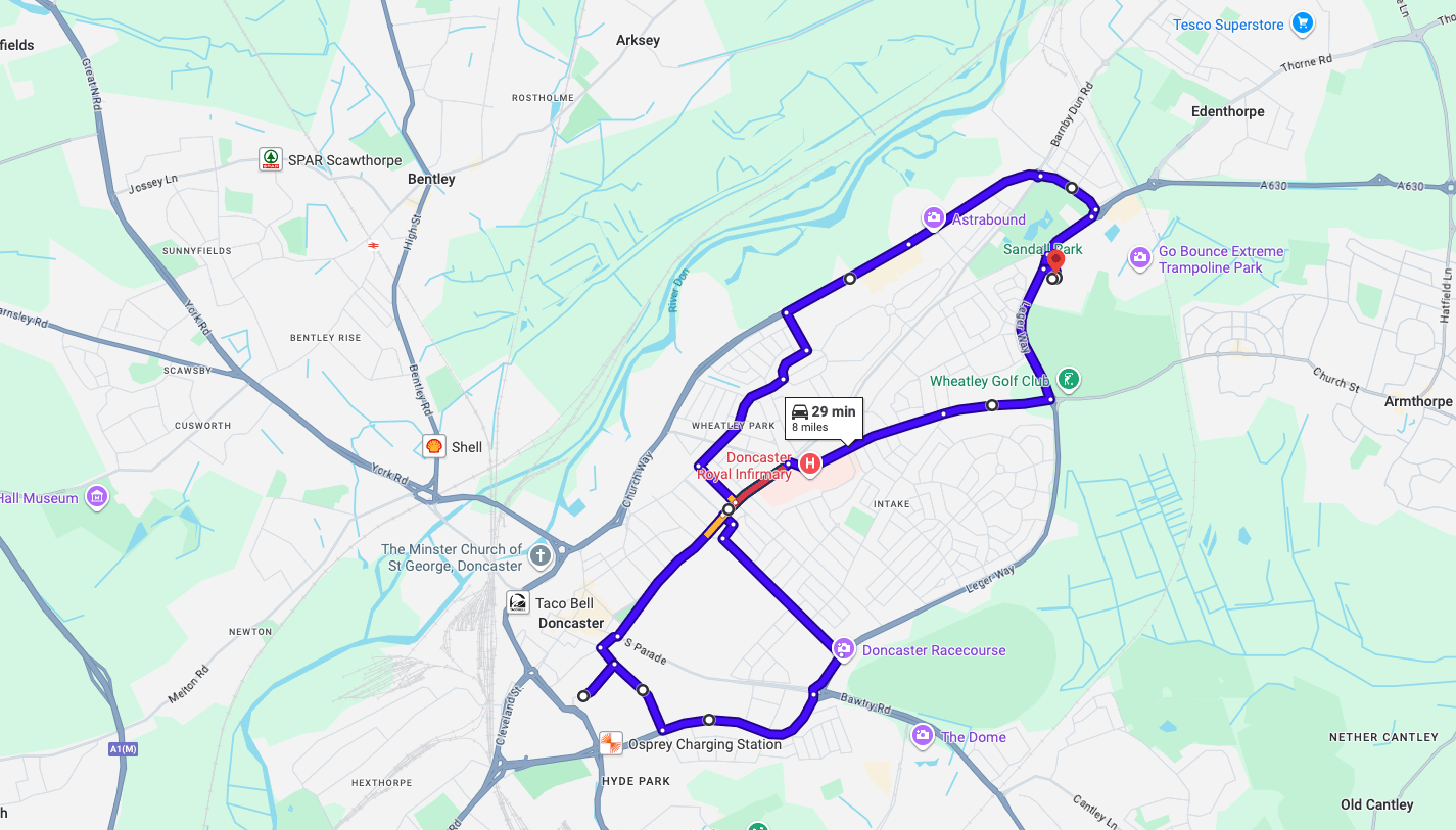 Practise real driving test routes in Doncaster before your exam – open directly in Google Maps