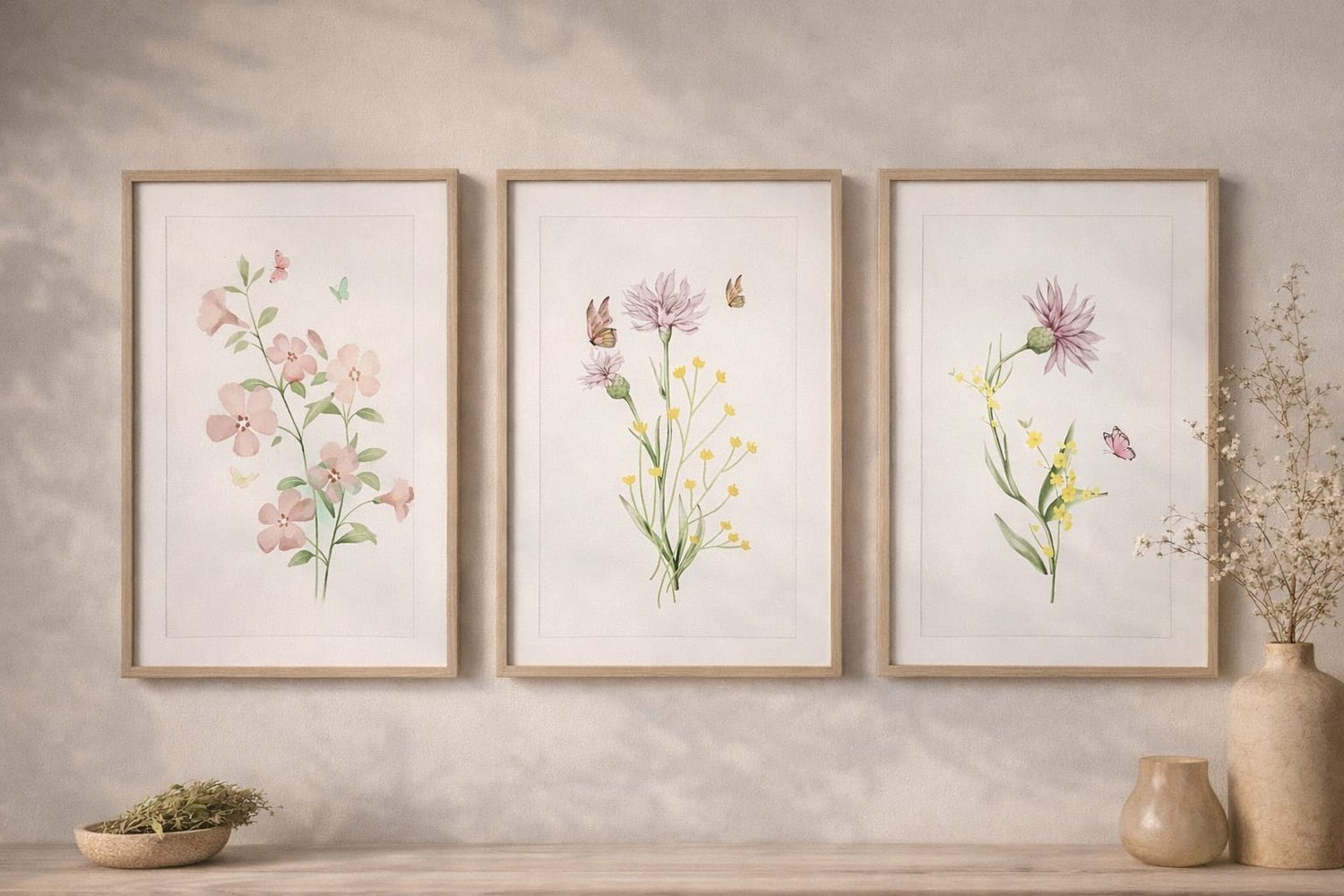This curated set of three botanical floral prints captures the gentle poetry of wildflowers through a soft Nordic lens where simplicity, balance, and natural beauty exist in perfect harmony.