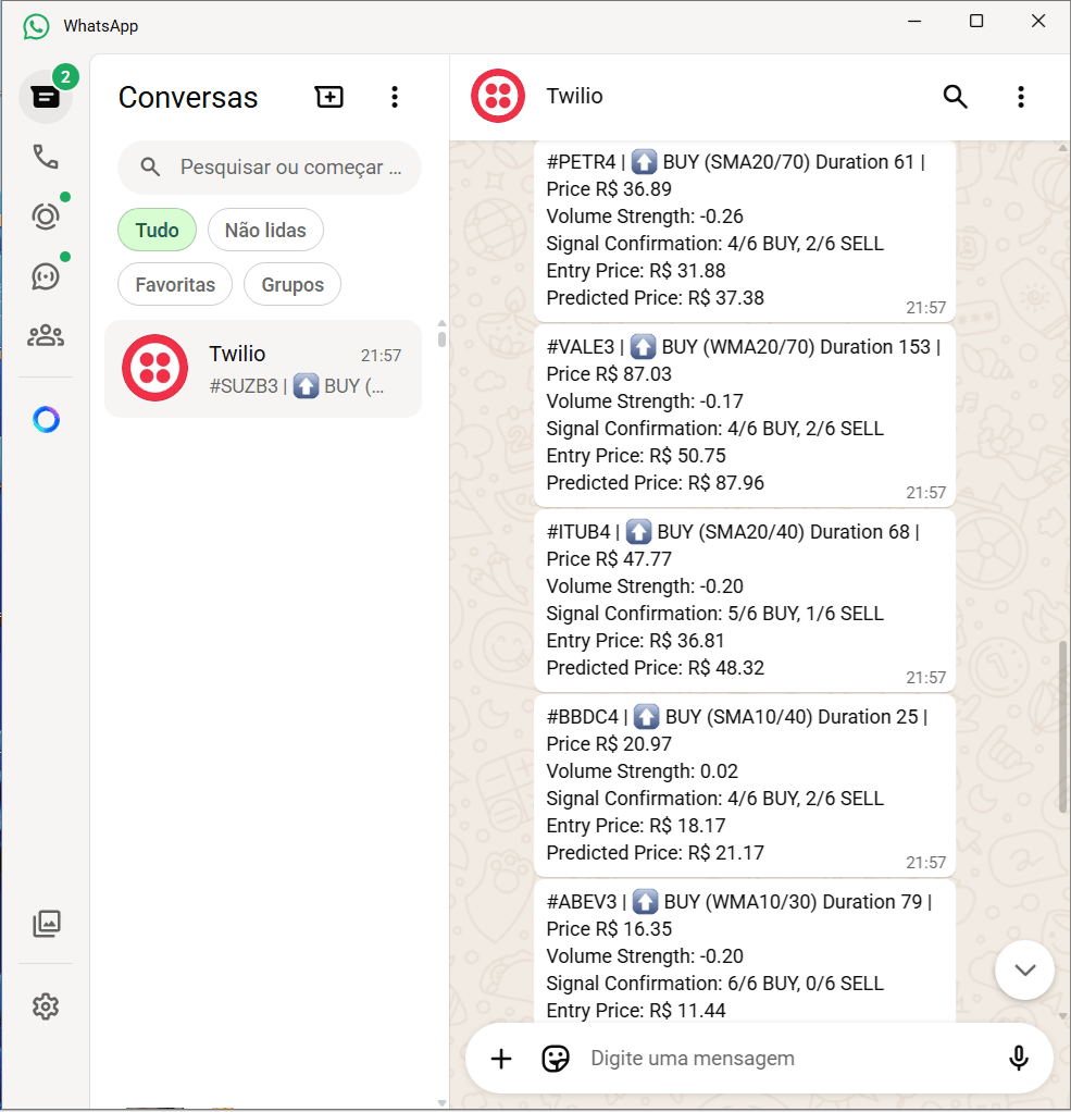 - recurring **trading signals via Telegram, WhatsApp and E-mail**.