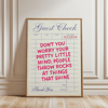 "Don't you worry your pretty little mind, people throw rocks at things that shine" Printable Wall Art. This beautiful, fun, trendy wall art is the perfect way to brighten up a room and add some personality. It reflects a modern, fun style, and makes for the perfect room wall decor.