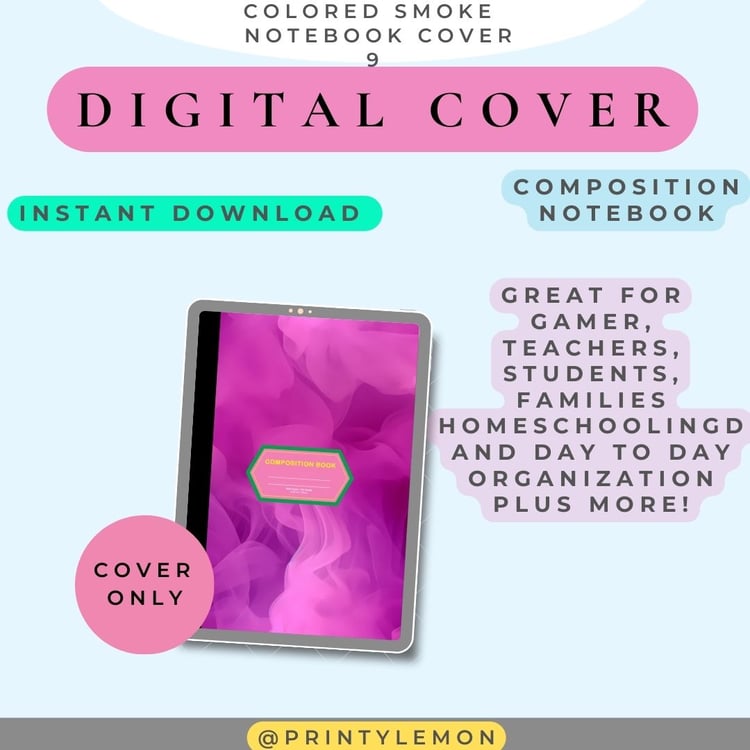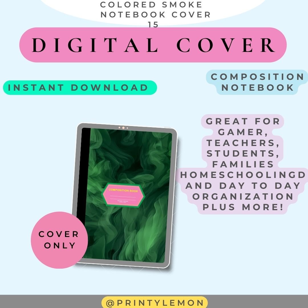 15 Colored Smoke 3D | Digital Cover Premium | Notebook Cover | GoodNotes | Composition Notebook | Printable