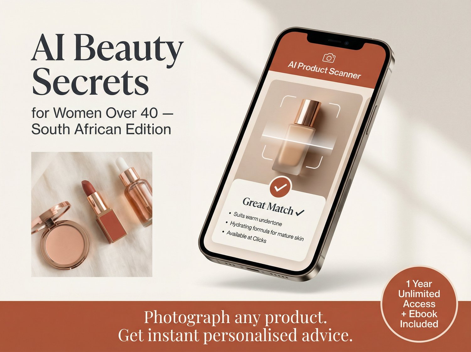 The only South African guide that shows you exactly how to use AI (like ChatGPT — free!) to find the perfect skincare, foundation, and lipstick for YOUR specific skin — at prices that make sense.