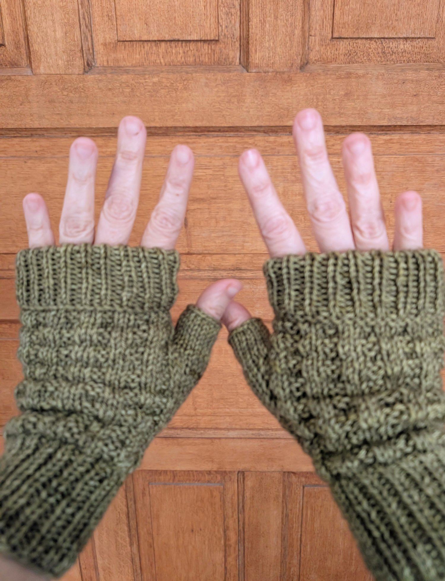 Super squishy fingerless mitt pattern! Three sizes, to fit most adult hands. Uses DK weight yarn.