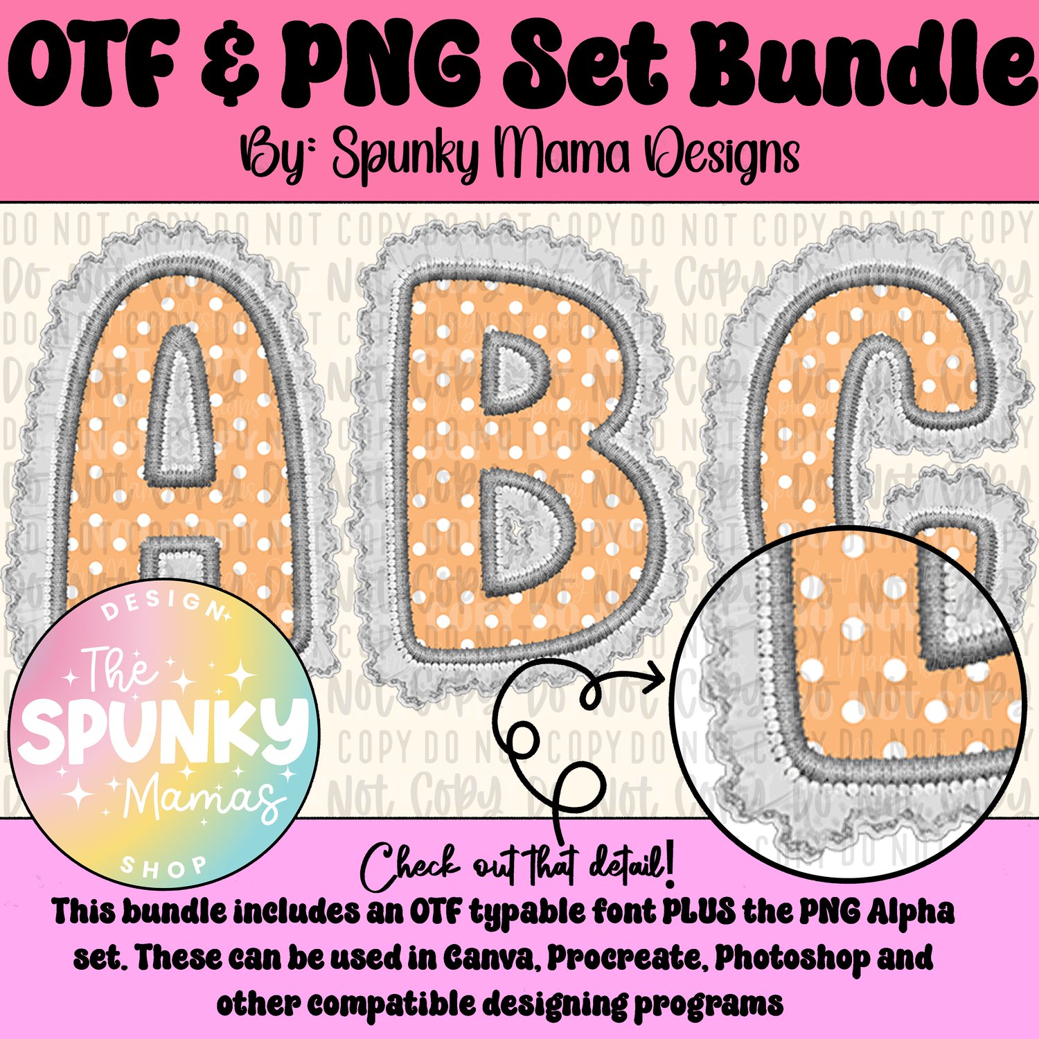 Vintage Granny Orange Polka Dots OTF Font & Digital PNG Alpha Set