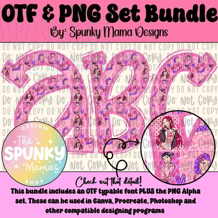 The OTF Font can be used in Photoshop, Canva Pro, Procreate and some other programs. (Please note that it does not work in all programs. You take responsibility of knowing this upon purchase.) Due to the nature of this being a digital product there is no refund accepted.